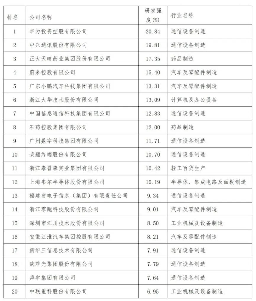 9月20日,2025世界制造业大会公布中国制造业企业500强的榜单,里面涉及到研发强度。