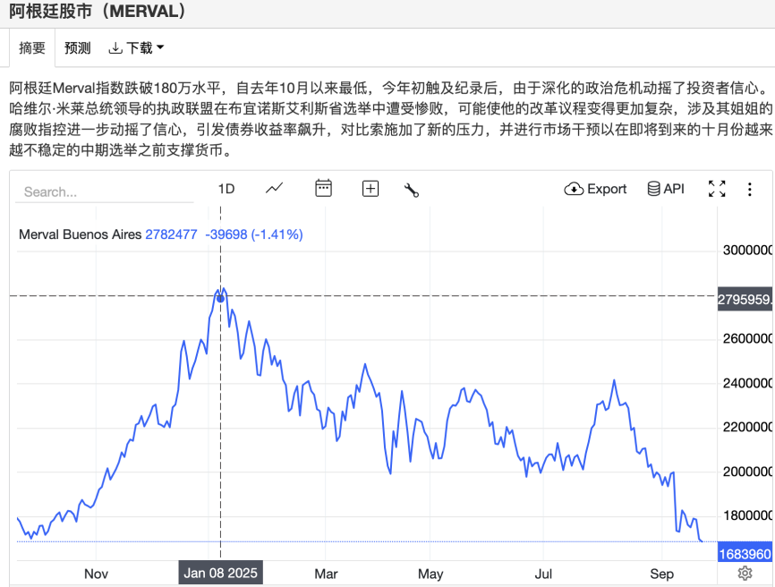 曾经在阿根廷股市赚得本满钵满的投资者,在2025年遭遇重创。年初,阿根廷股市一度超过280万点,大幅回落超4成。