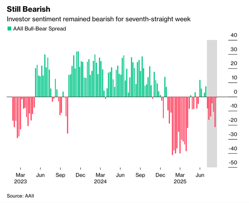 理性仍在。据美国个人投资者协会(AAII)的调查的数据,在美联储降息,美股迭创新高的时候,美国散户却一直看空美股。据统计,个人投资者的看空情绪已连续七周超过看多情绪。