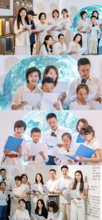 在“亲老朗读”环节,香港电台主持人金丹女士携女儿Mia专程从香港飞来与在北京的父亲、母亲共赴美好之约。当《贝加尔湖畔》伴奏响起,祖孙三代共读一首诗,她分享自己从旧金山到香港的生活,以香港文化节目主持人及青少年朗读教育文化传播专业人士的身份分享朗读的心理疗愈作用。金丹女士说:“朗读带給母亲、我、女儿三代人情感联系和支撑,让我们超越物理維度隔空相拥,缓解思念”。