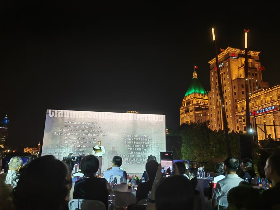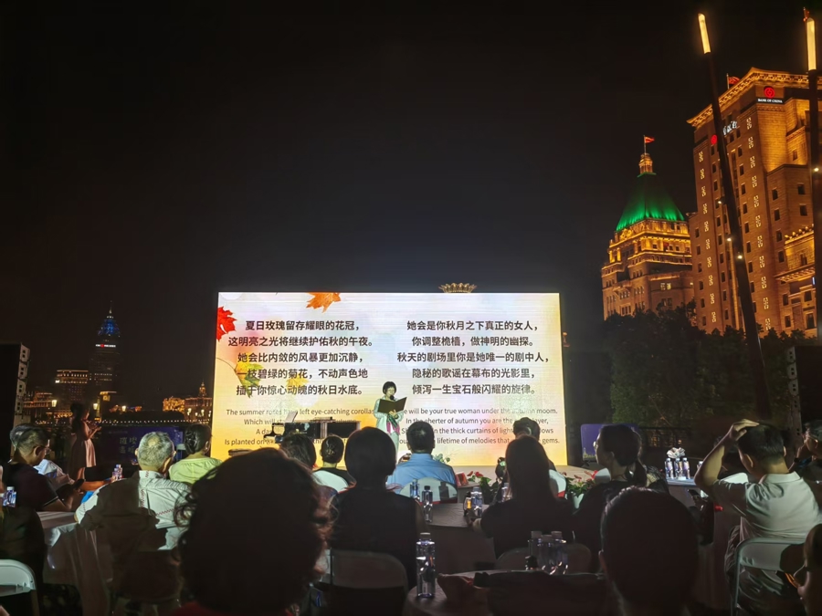 本次艺赏会主题是“此刻的浪漫”,以“外滩的浪漫、黄浦的温度、上海的味道”为主线,精心编排了多个环节。活动以青年音乐家罗威专为外滩夜景创作的合奏《外滩漫步》拉开序章,参与诗歌朗诵的嘉宾汇集亚非拉美欧及本土诗人,来自世界各地的声音通过诗歌,阐述了不同文化背景下的“浪漫”。现场柔和夜灯与恰到好处的配乐布置,将观众带入沉浸式的欣赏氛围。